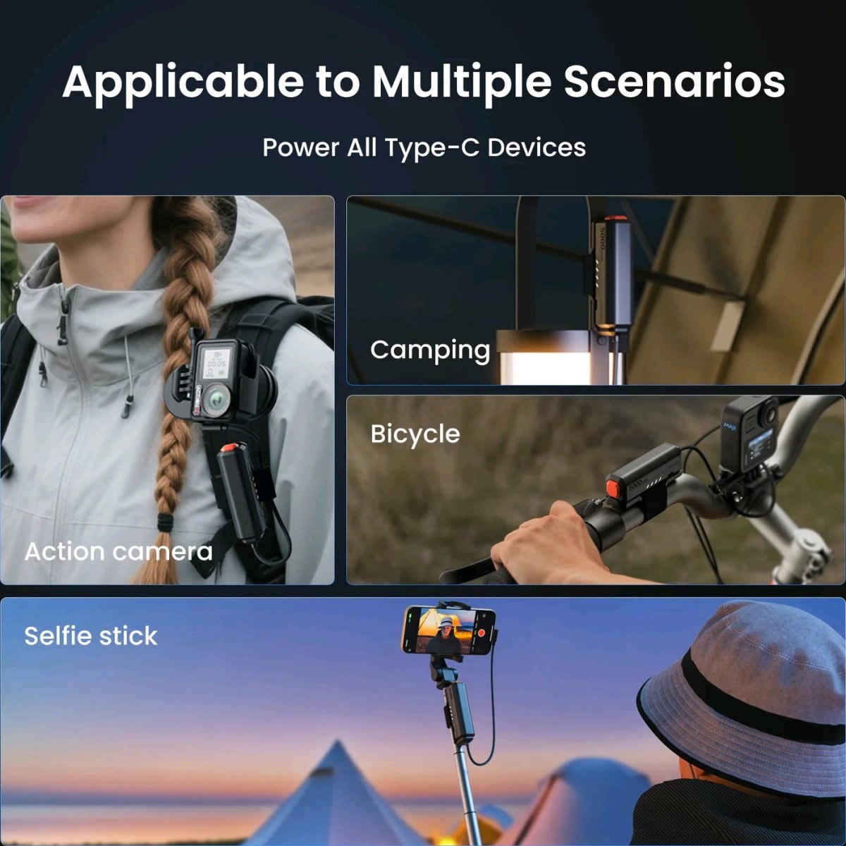 Použitie v rôznych scenároch – Nad rámec VR: ideálny pre akčné kamery, kempingové svetlá, selfie tyče a ďalšie zariadenia s USB-C.