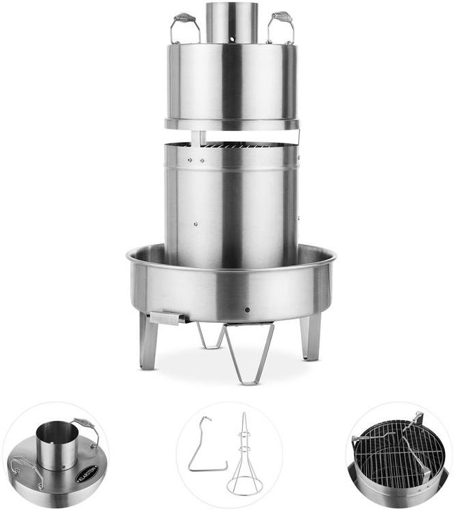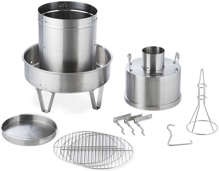 Klarstein Feuertaufe grilovacia nádoba je všetko v jednom grile s garanciou úspechu. Či už grilovanie, údenie, BBQ alebo opekanie- mäso sa zmení vďaka konvekčnej metóde grilovania nepriamym ohrevom na šťavnato jemné delikatesy. Jednoducho umiestnite želané grilovacie špeciality do vnútra grilu, zapáľte drevené uhlie a už sa to môže začať. V zlomkoch inak bežného času sa mäso zmení na parádnu hostinu. Rebierka alebo kuriatka sú po niečo viac ako jednej hodine pripravené na konzumáciu a nevyžadujú si skoro žiadnu pozornosť. Vďaka rozsiahlemu príslušenstvu je úplne jednoduché pripraviť tie najrôznejšie maškrty: držiaky na rebierka, držiak na hydinu ako aj tri grilovacie rošty môžu byť použité podľa chuti a nálady a naložené s mäsom. Cool touch rukoväte na veku ako aj nádoba na zachytávanie tuku uľahčujú manipuláciu a zjednodušujú čistenie grilu z ušľachtilej ocele.