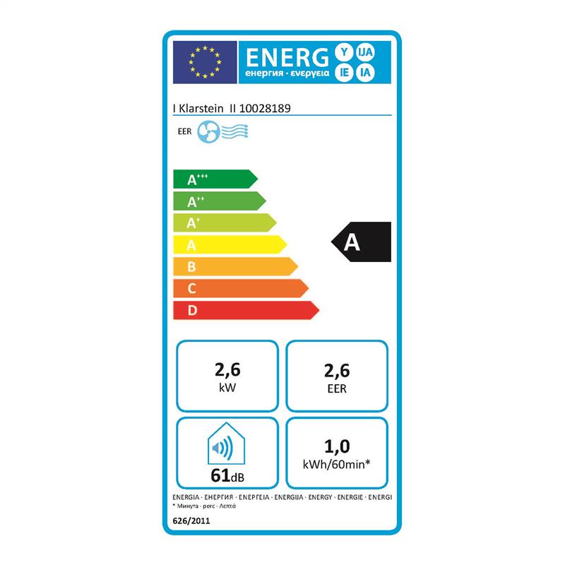 Ročná spotreba energie (celkový príkon znásobený na základe 500 hodín prevádzky chladenia pri plnej záťaži) v kWh: 500kWh