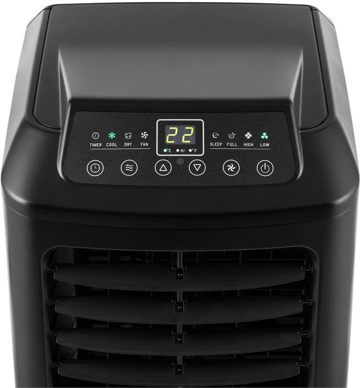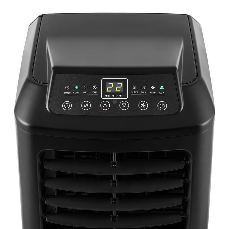 Pomocou ovládacieho poľa v hornej časti možno nastaviť klimatizáciu podľa želania. Pre temperovanie priestorov sa dá voliť v rozmedzí od 17 do 30 °C - v závislosti na tom, či máte radšej teplejšie alebo chladnejšie prostredie. Okrem chladenia môže byť aktivovaný ventilátor s dvomi rýchlosťami pre optimálnu distribúciu vzduchu v miestnosti. Smer prúdenia môže byť riadený pomocou horizontálnych a vertikálnych lamiel. Rovnako sa dá zapnúť odvlhčovač, ktorý rýchlo zbavuje vlhký vzduch v miestnosti prebytočnej vody a zachytáva ju v integrovanej vodnej nádrži. Akonáhle je táto nádrž plná, odvlhčovač sa deaktivuje a výstražná LED dióda upozorní na potrebu vyprázdnenia.