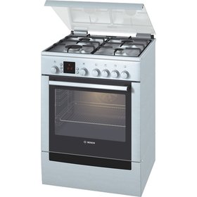 Kombinovaný sporák, 4 plynové horáky, rúra 58 l, gril, pizza, 3D teplý vzduch, zapaľovanie v gombíku, displej, časovač, termoelektrická poistka zhasnutia plameňa, detská poistka, rozmery (vxšxh) 85x60x60---