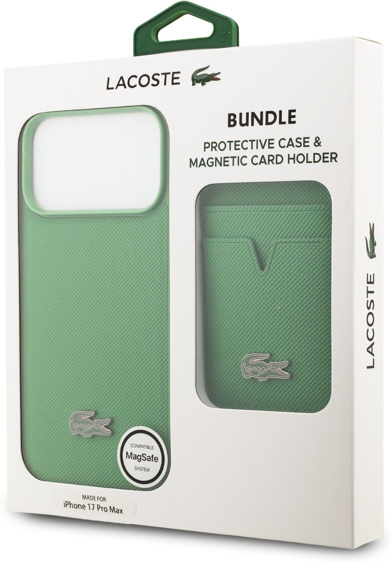 Lacoste Iconic Petit Pique MagSafe kryt + peňaženka pre iPhone 17 Pro Max, zelený