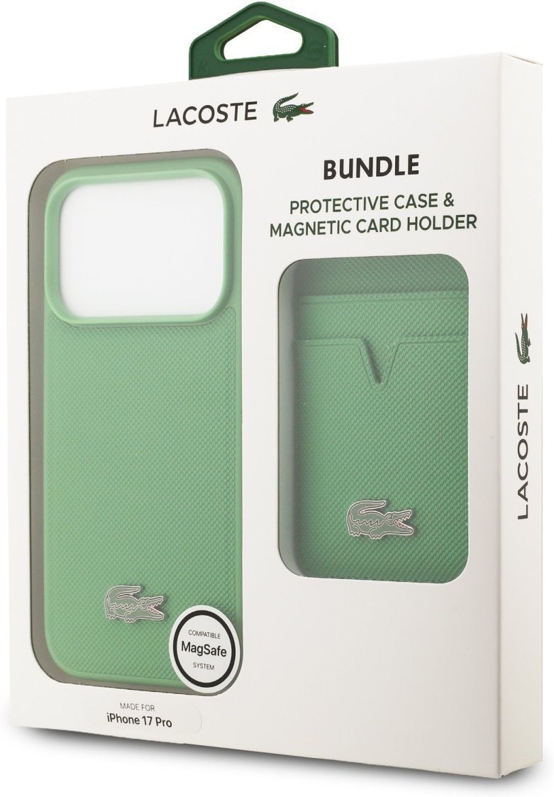 Lacoste Iconic Petit Pique MagSafe kryt + peňaženka pre iPhone 17 Pro, zelený