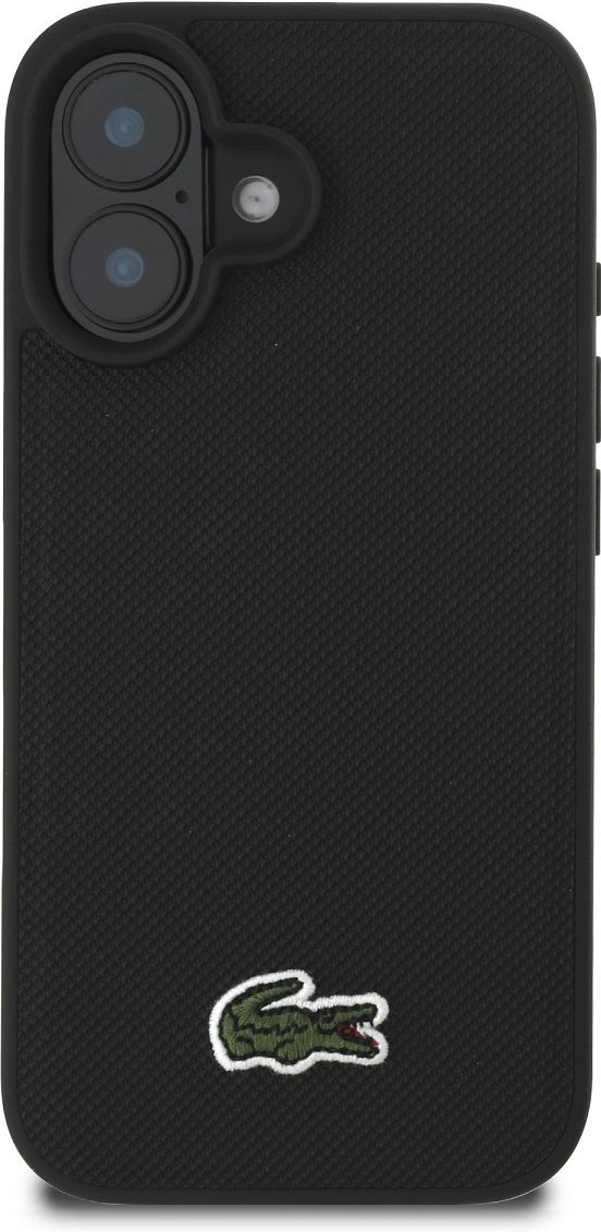 Lacoste Iconic Petit Pique Woven Logo MagSafe kryt pre iPhone 16 Plus, čierny