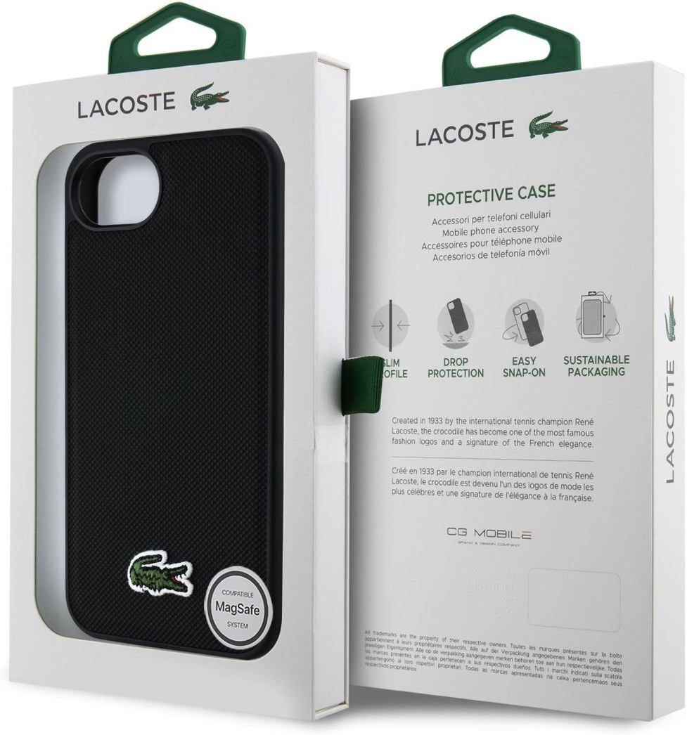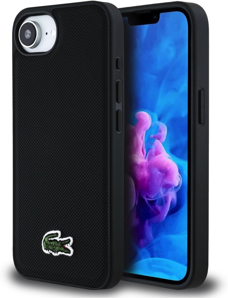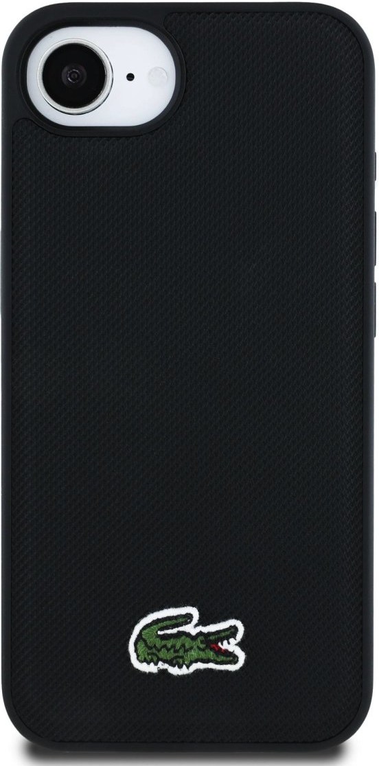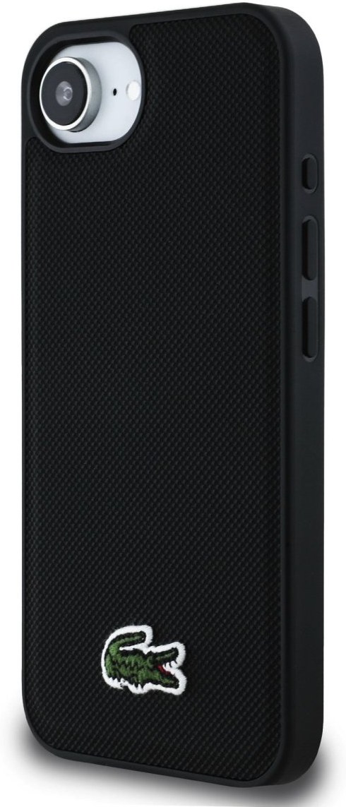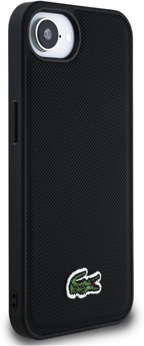 Lacoste Iconic Petit Pique Woven Logo MagSafe kryt pre iPhone 16e, čierny