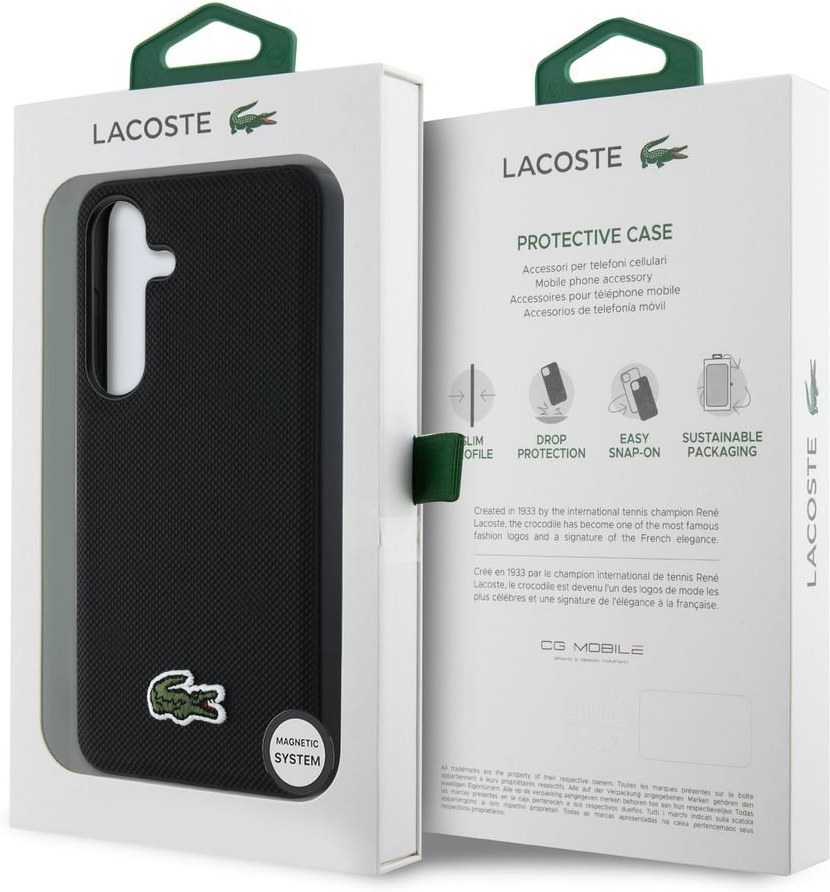 Lacoste Iconic Petit Pique Woven Logo MagSafe kryt pre Samsung Galaxy S25, čierny