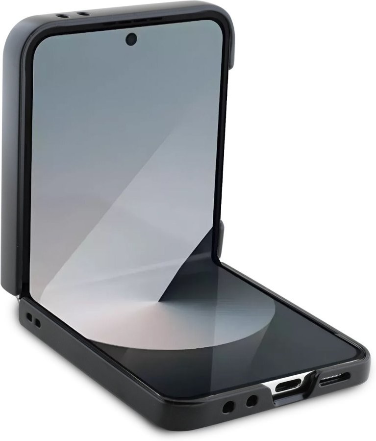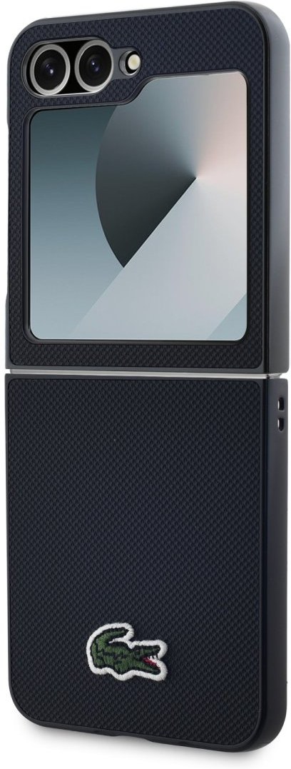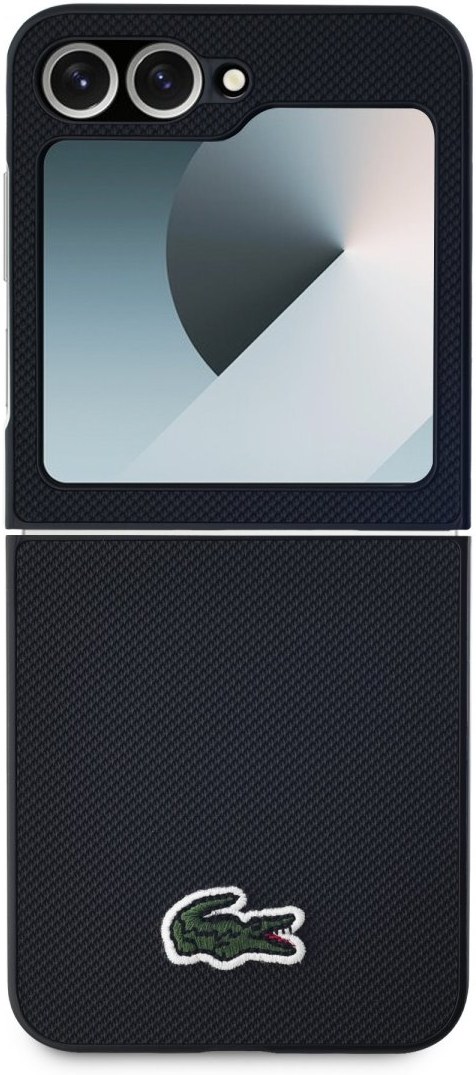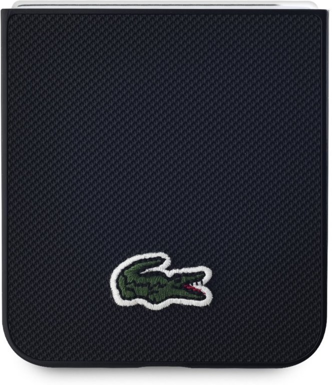 Lacoste Iconic Petit Pique Woven Logo MagSafe kryt pre Samsung Galaxy Z Flip 6/7 FE, čierny