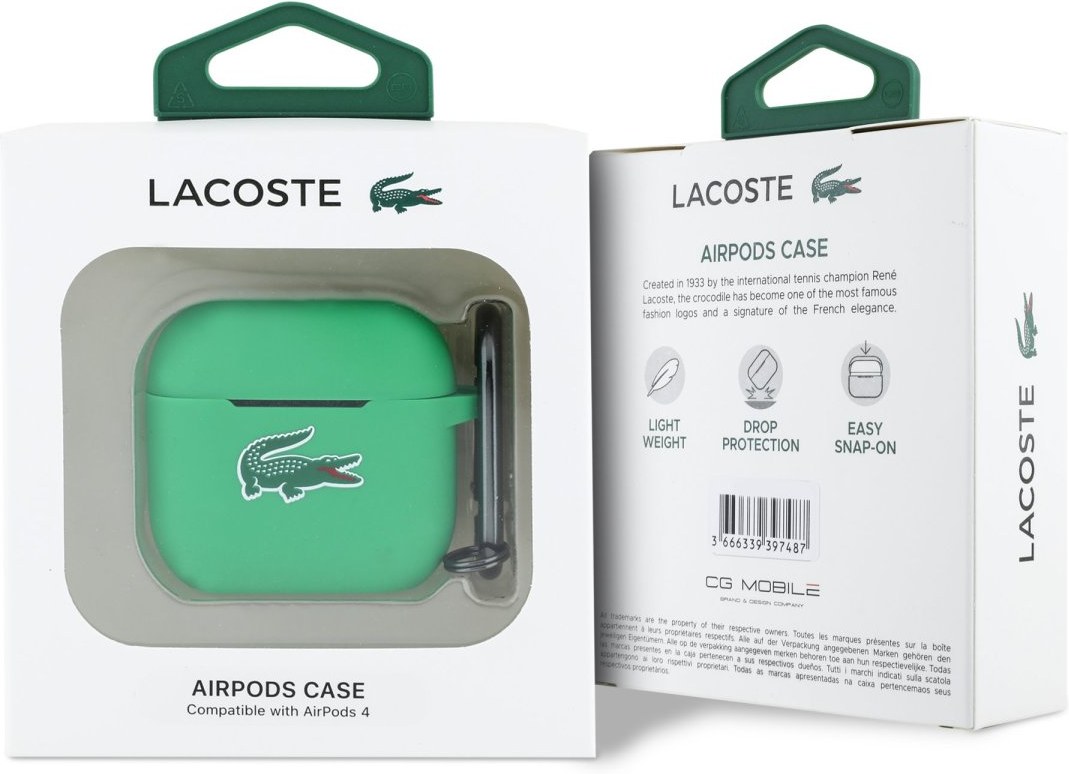 Lacoste Liquid Silicone Croc Logo puzdro pre AirPods 4, zelené