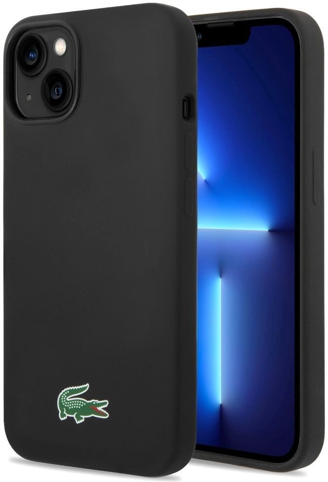 Lacoste Liquid Silicone Microfiber Croc Logo MagSafe kryt pre iPhone 13/14/15, čierny