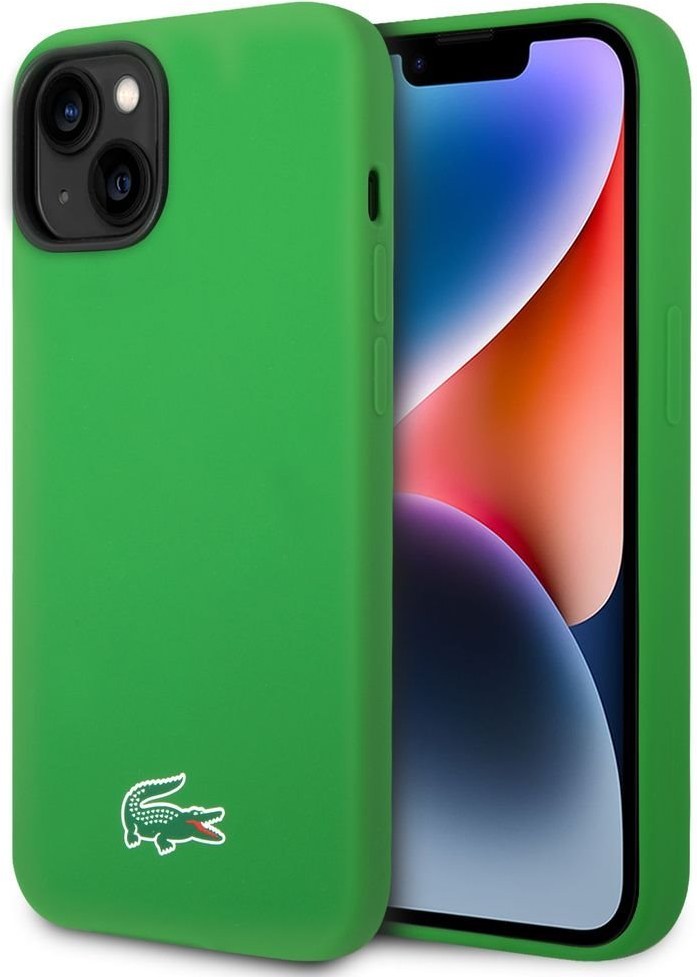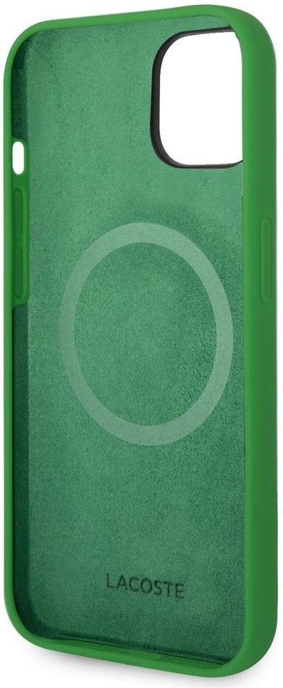 Lacoste Liquid Silicone Microfiber Croc Logo MagSafe kryt pre iPhone 13/14/15, zelený