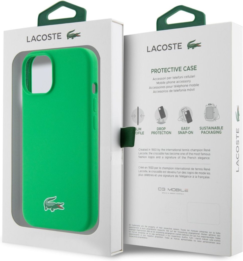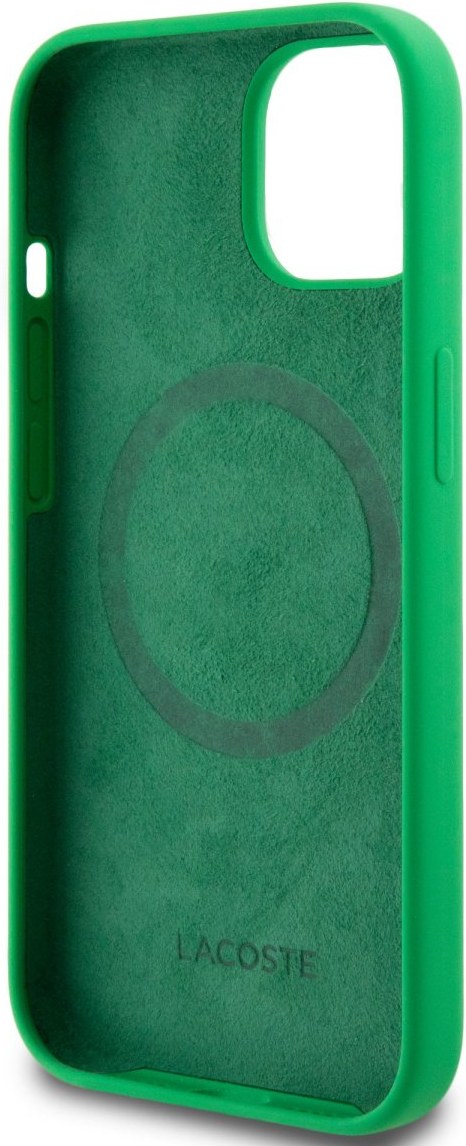 Lacoste Liquid Silicone Microfiber Croc Logo MagSafe kryt pre iPhone 15, zelený