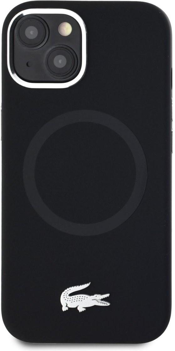 Lacoste Liquid Silicone Microfiber Silver Croc Logo MagSafe kryt pre iPhone 15, čierny