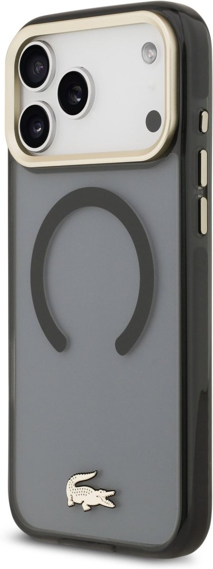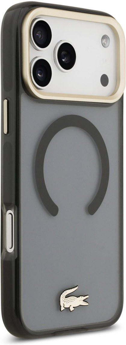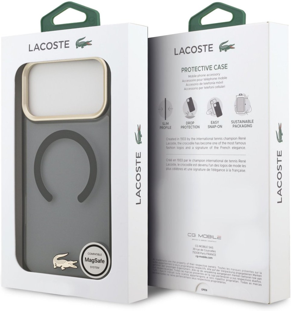 Lacoste PC/TPU Frosted Finish Gold Logo MagSafe kryt pre iPhone 17 Pro Max, čierny
