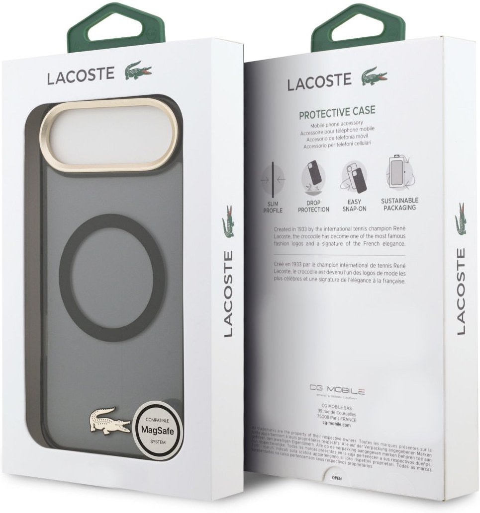 Lacoste PC/TPU Frosted Finish Gold Logo MagSafe kryt pre iPhone Air, čierny