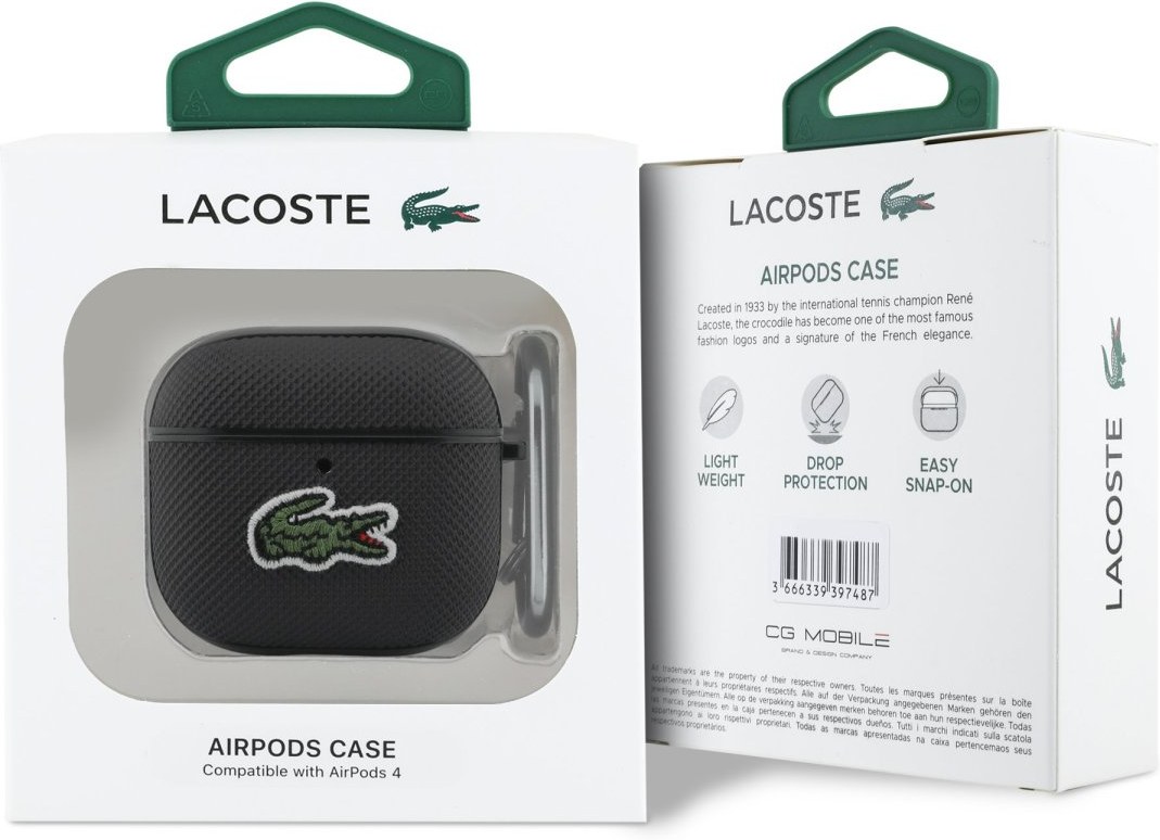 Lacoste Petit Pique Croc Logo Patch puzdro pre AirPods 4, čierne