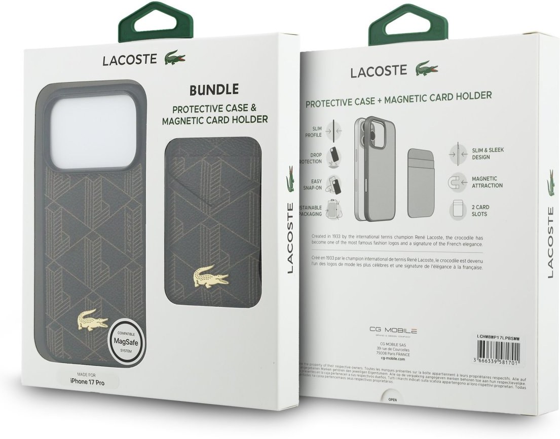Lacoste PVC Blend MagSafe Zadný Kryt + Peňaženka je dokonalý set pre váš telefón, kreditnú kartu aj váš outfit, ktorý kombinuje funkčnosť a štýl v jednom.