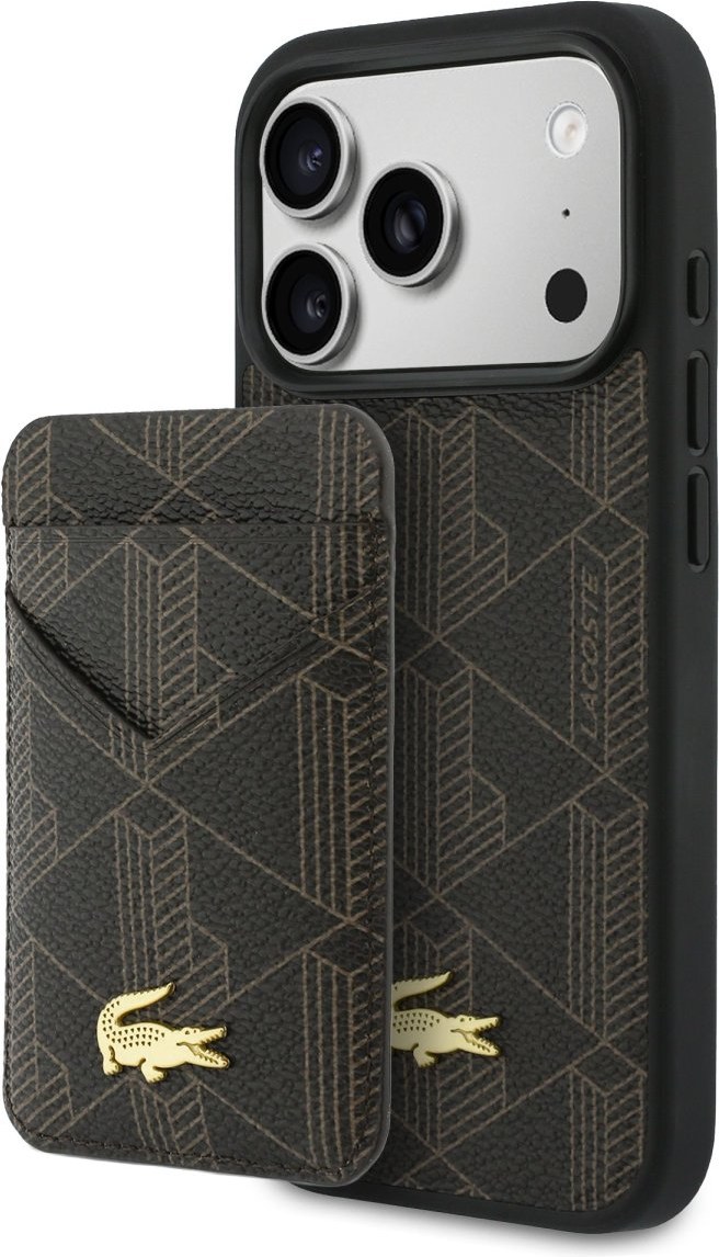 Lacoste PVC Blend MagSafe kryt + peňaženka pre iPhone 17 Pro, hnedý