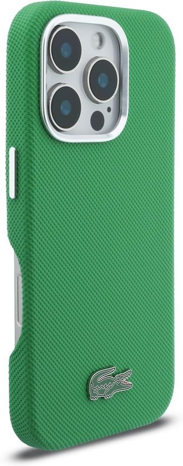 Lacoste PVC Iconic Petit Pique Metal Logo MagSafe kryt pre iPhone 16 Pro, zelený