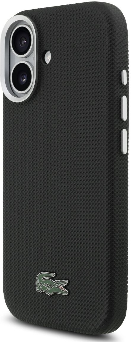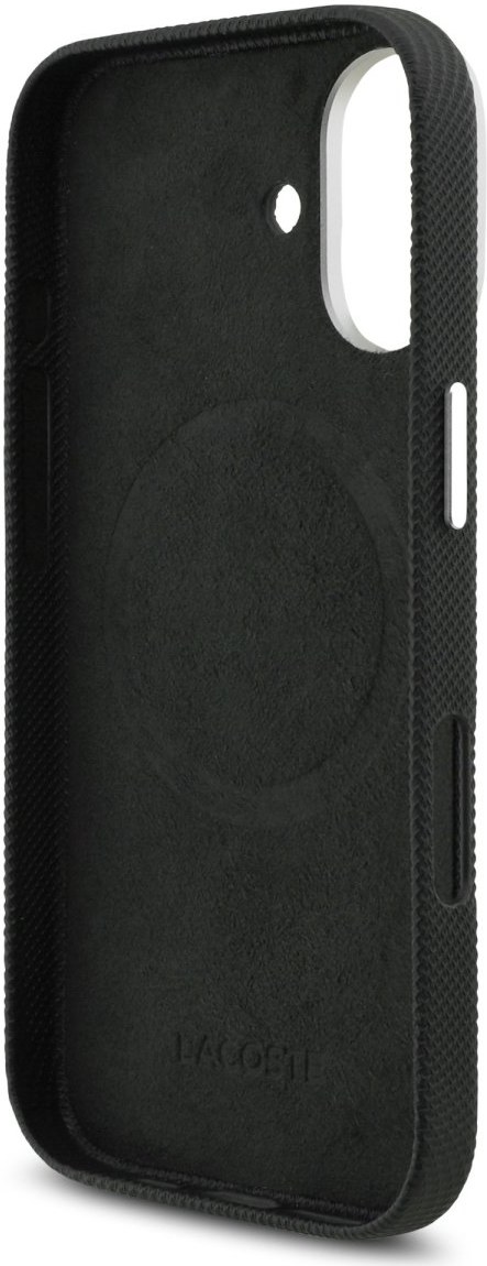 Lacoste PVC Iconic Petit Pique Metal Logo MagSafe kryt pre iPhone 17, čierny