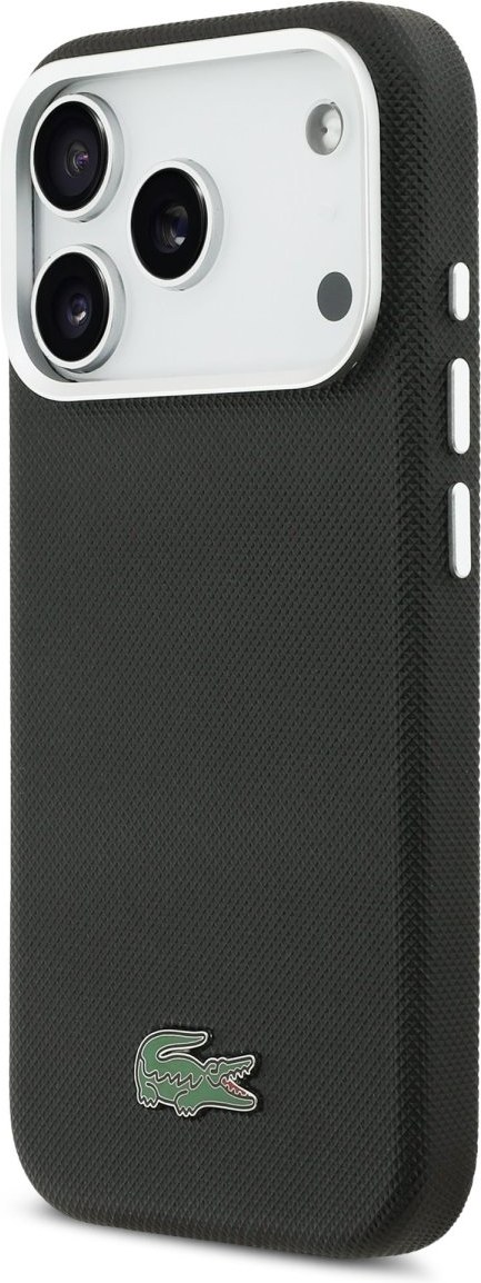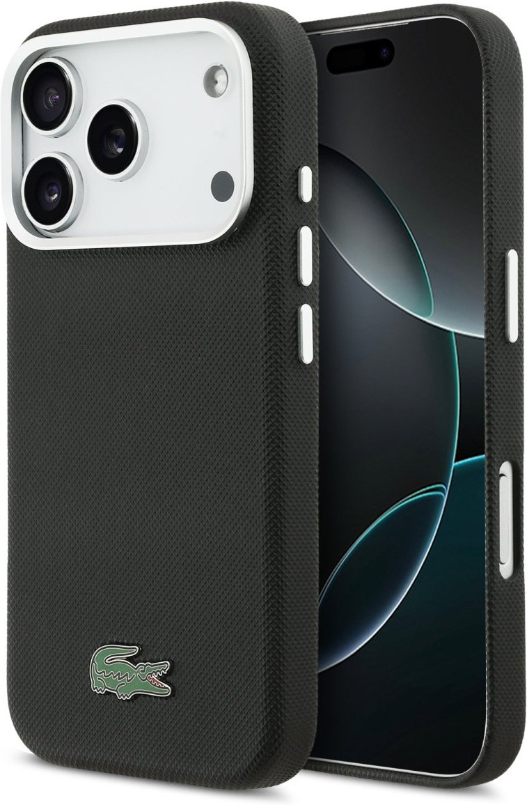 Lacoste PVC Iconic Petit Pique Metal Logo MagSafe kryt pre iPhone 17 Pro, čierny