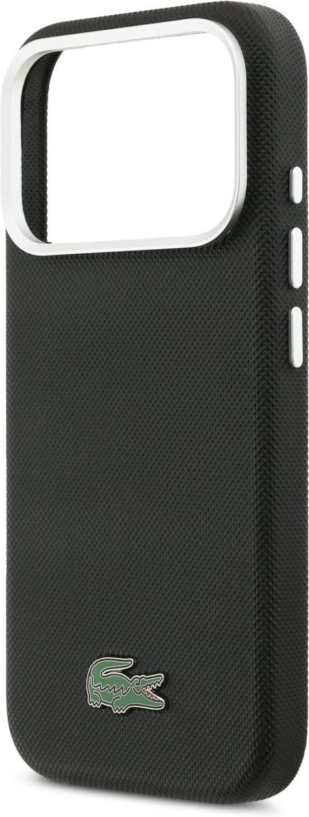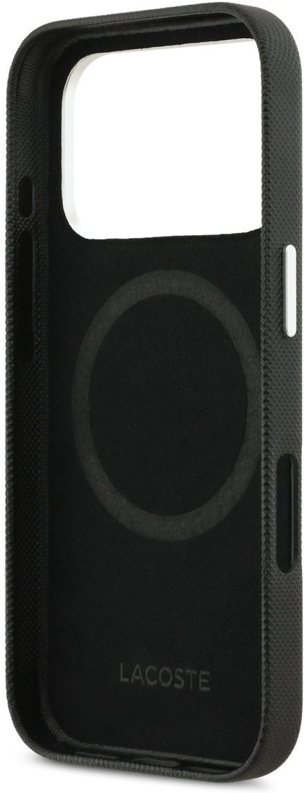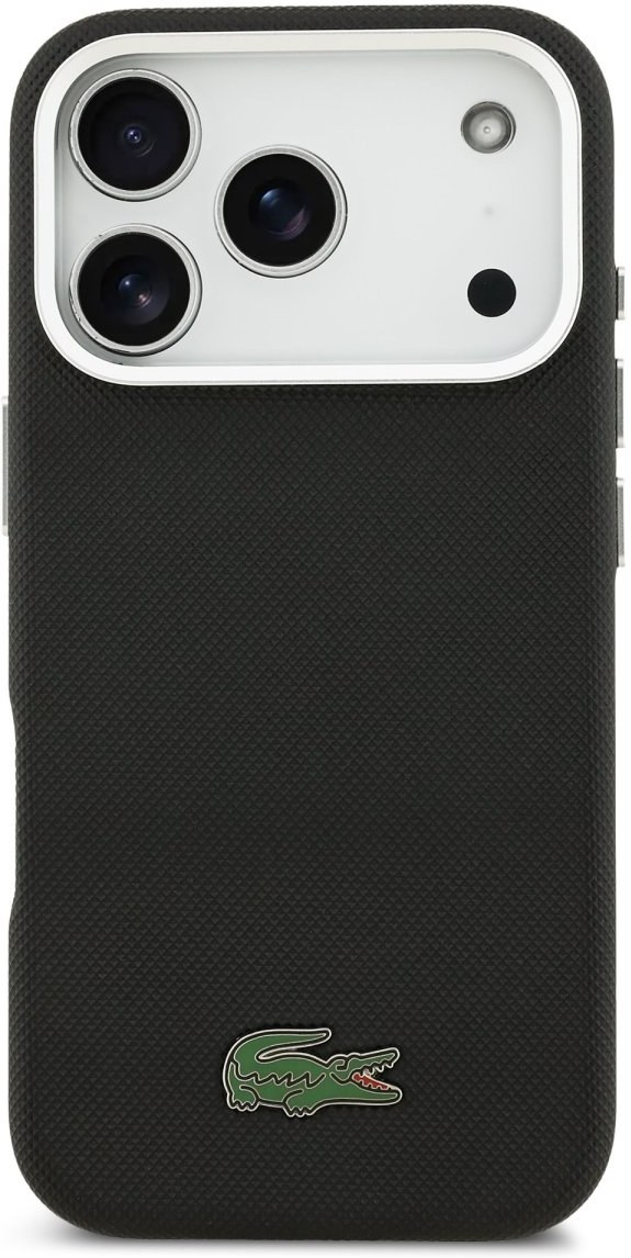 Lacoste PVC Iconic Petit Pique Metal Logo MagSafe kryt pre iPhone 17 Pro Max, čierny