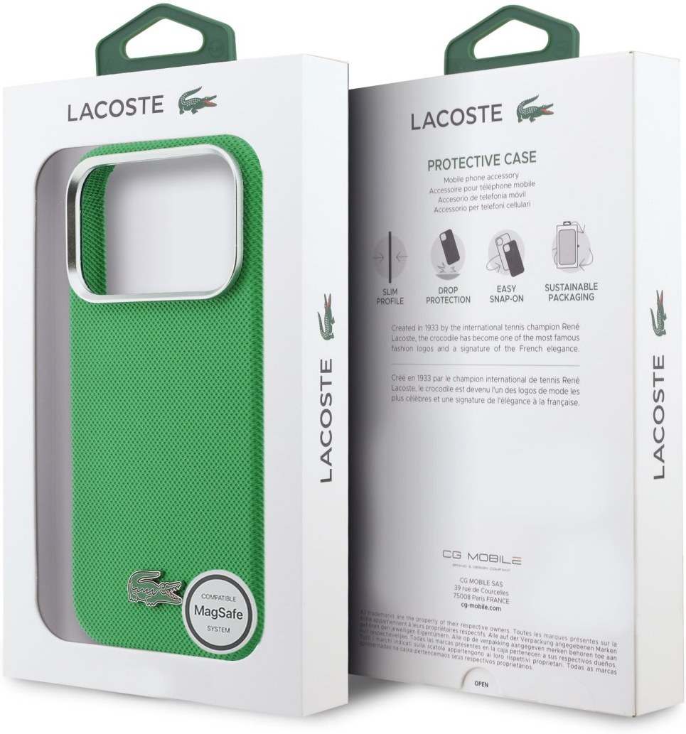 Lacoste Iconic Petit Pique MagSafe zadný kryt je dokonalý doplnok pre váš telefón aj váš outfit, ktorý kombinuje funkčnosť a štýl v jednom. Je vyrobený z ľahkej a odolného PVC materiálu s jemnou textúrou a ponúka skvelú ochranu a pohodlie pri používaní. Vnútorná výstelka z jemného mikrovlákna zaisťuje, že váš telefón bude chránený pred poškriabaním a drobnými poškodeniami. Povrchová úprava krytu zaisťuje, že sa skvele drží v ruke a nešmýka sa, čo minimalizuje riziko vykĺznutia telefónu. Vďaka presnému tvaru perfektne sedí na telefóne a umožňuje ľahký prístup ku všetkým tlačidlám a konektorom. Tento kryt podporuje technológiu MagSafe, čo znamená, že je kompatibilný s bezdrôtovým nabíjaním a ďalšími MagSafe doplnkami. Elegantný a čistý dizajn s ikonickým kovovým logom krokodíla a príjemnou textúrou dodáva krytu nezameniteľný vzhľad. Pokiaľ hľadáte kryt, ktorý dokonale spája štýl s praktickým využitím, tento model od Lacoste je presne to, čo potrebujete.Kľúčové vlastnosti