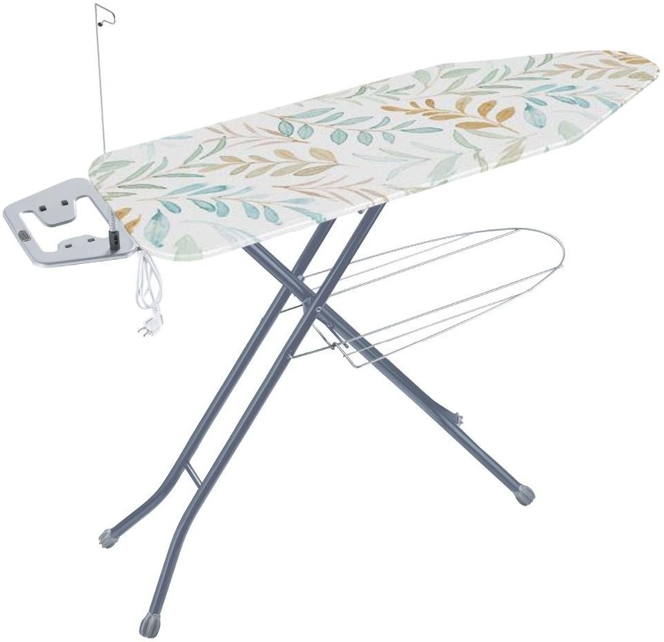 Doska na žehlenie s elektrickou zásuvkouKvalitná žehliaca doska s transportným zámkom, žehliacou plochou odvádzajúcou paru, elektrickou zásuvkou a držiakom el. kábla. Doska má stabilnú a bezpečnú konštrukciu s proti-šmykovými koncovkami. Súčasťou dosky je bavlnený poťah. Doska je výškovo nastaviteľná do 92 cm s odkladacou plochou pre naparovacie žehličky so silikónovými prvkami proti poškodeniu plochy a žehličky pri odložení a odkladaciu plochou pre prádlo.