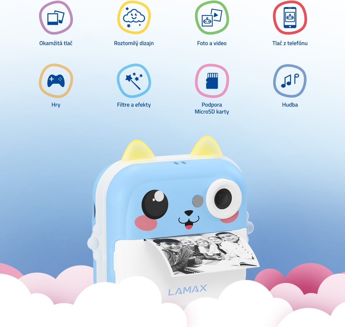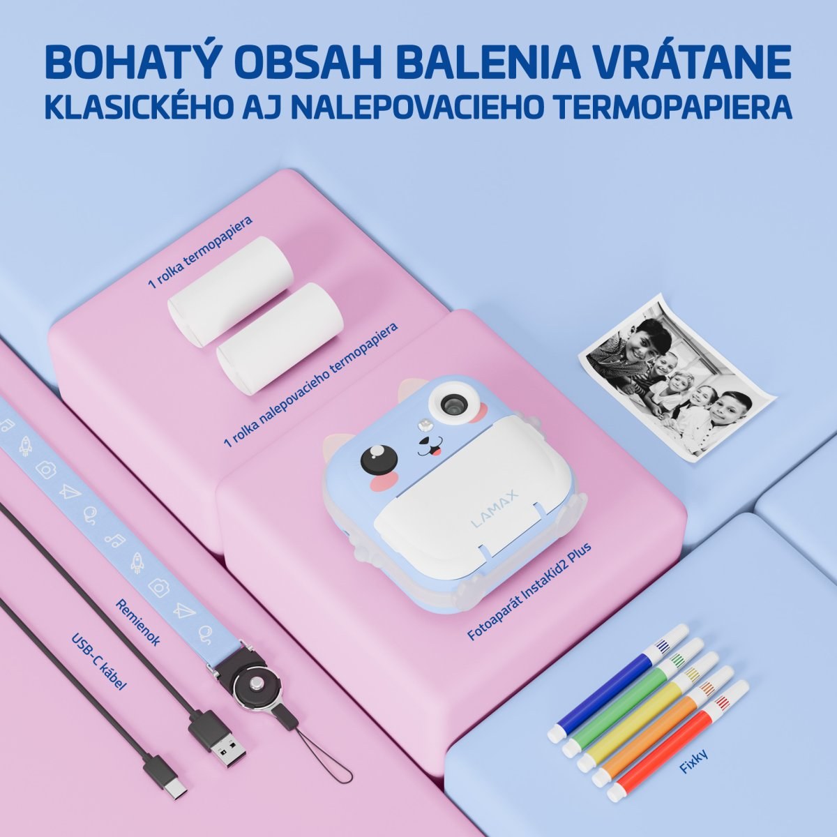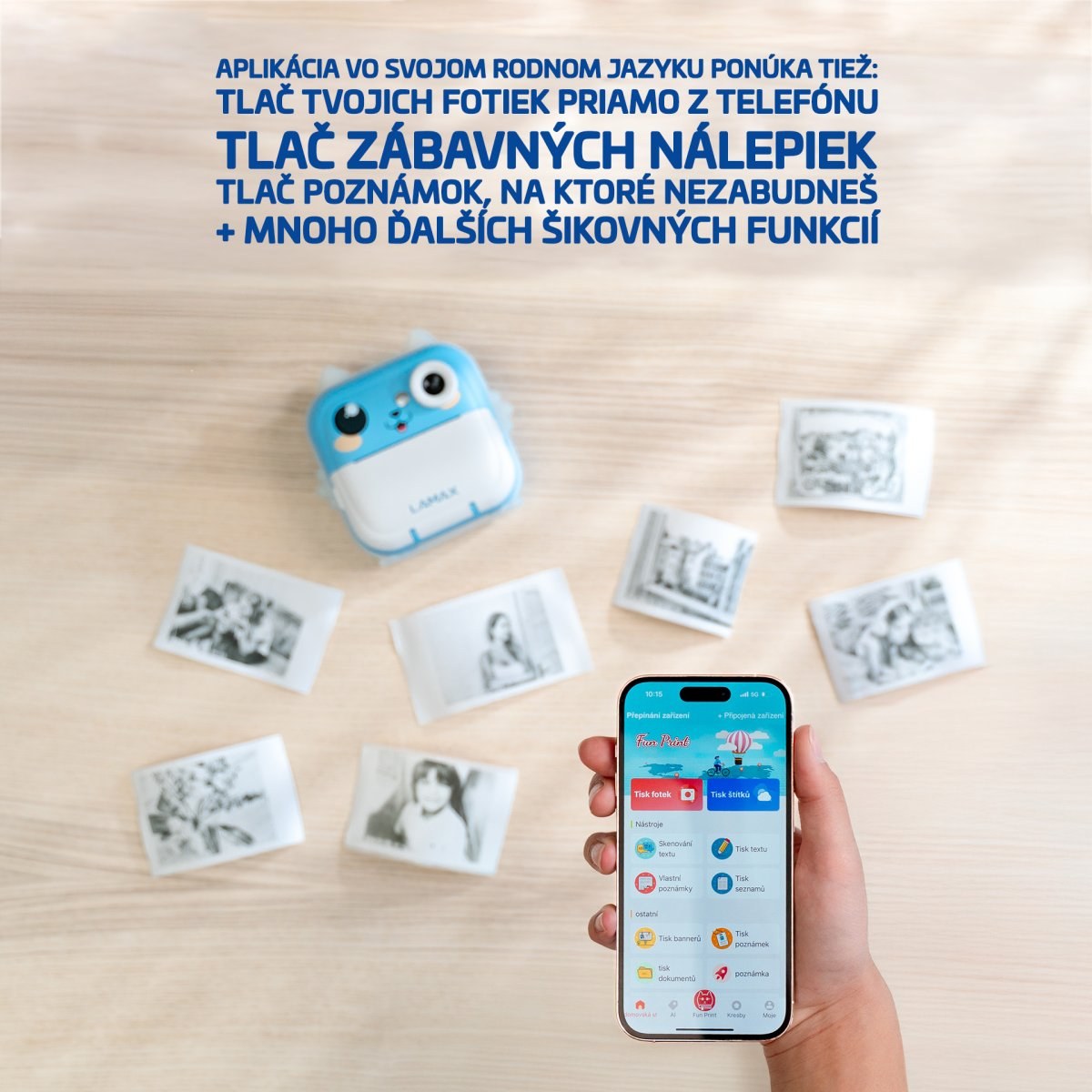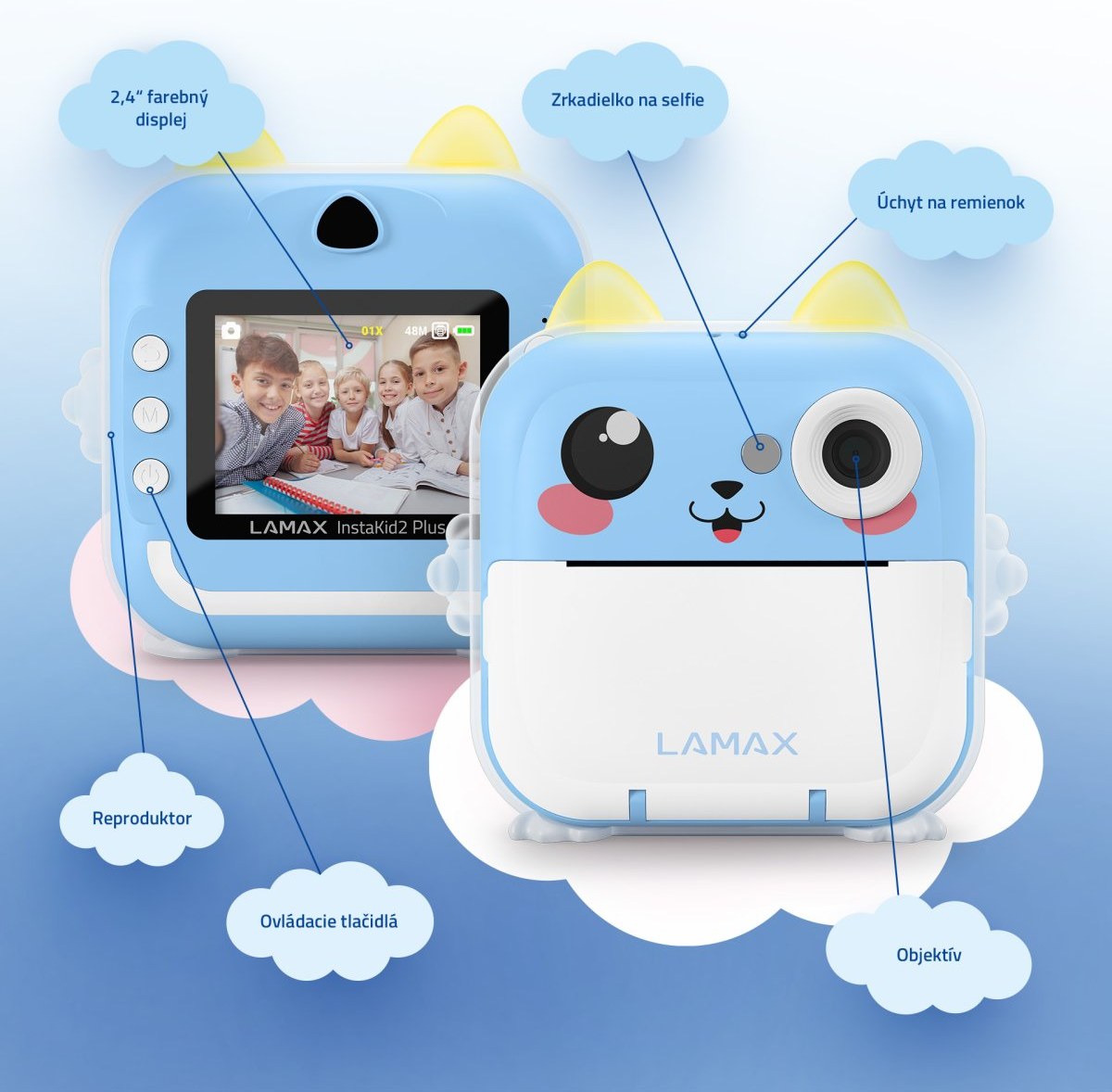 Objavte kúzlo zachytených momentov, ktoré si vaše deti vytlačia behom pár sekúnd. Detský fotoaparát LAMAX InstaKid2 Plus s okamžitou tlačou nie je len roztomilý na pohľad. So slovenskou aplikáciou, vysokým rozlíšením fotiek aj videa a sadou kreatívnych nástrojov sa stáva zábavným parťákom na výlety aj do izbičky. Deti si s ním nielen odfotia svoje zážitky, ale hneď si ich aj vytlačia, vyfarbia priloženými fixkami a nalepia do denníka alebo kamkoľvek budú chcieť. Pomocou aplikácie potom zvládnu tlačiť fotky a poznámky z telefónu, skenovať texty zo zošitov, preklápať snímky do animovaného štýlu alebo si s pomocou AI vyfarbiť čiernobiele obrázky. A keď si od fotenia chcú na chvíľu oddýchnuť? O zábavu sa postarajú aj vstavané hry. LAMAX InstaKid2 Plus fotoaparát podporuje kreativitu, samostatnosť aj hravé učenie a kto vie, napríklad práve tento foťáčik odštartuje kariéru vášho dieťaťa vo svete fotografií a filmu.