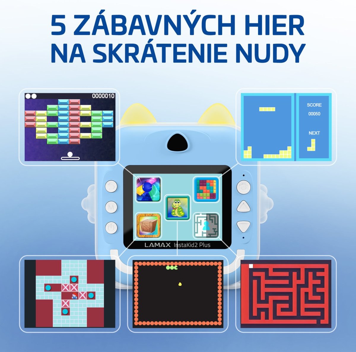 Keď práve nefotí, môžu sa deti zabaviť piatimi jednoduchými hrami priamo vo fotoaparáte.