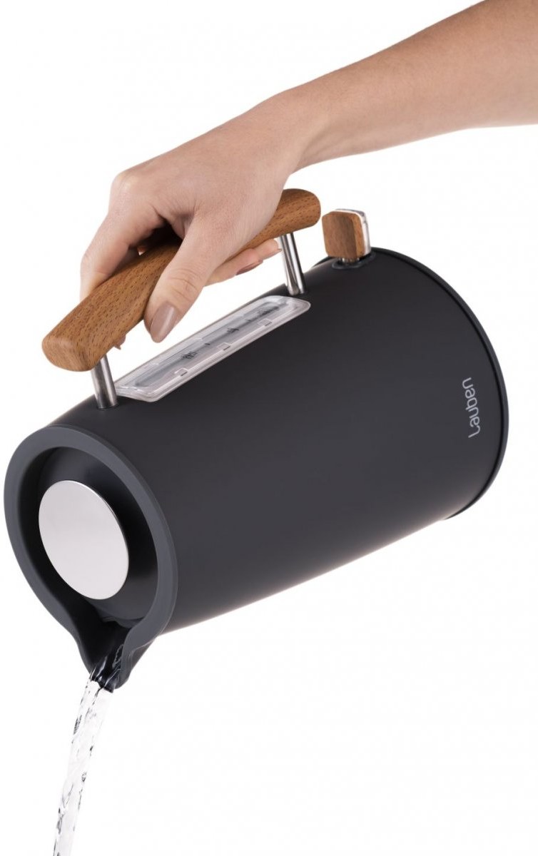 Kanvica Lauben je navrhnutá v minimalistickom a vkusnom severskom dizajne, ktorý sa bude vo vašej kuchyni vynímať. Pogumovaný povrch kanvice v kombinácii s rukoväťou v drevenom dekore vyzerá štýlovo. Hlavný vypínač kanvice disponuje LED podsvietením.Štýlový doplnok