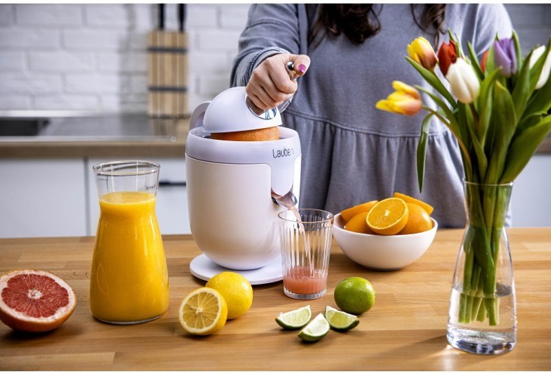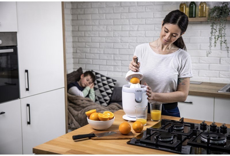 Vyznávačom zdravého životného štýlu nesmie doma chýbať pomocník v podobe elektrického citrusovača Lauben Electric Citrus Juicer 110WT. Jeho čistý dizajn ozdobí každú kuchynskú linku, ktorú vďaka funkcii Anti Drip nepofŕka ani kvapka šťavy. Funkcia proti odkvapkávaniu zaisťuje, že džús odteká priamo do pohára či zostáva v zásobníku. Rýchlosť otáčok pri odšťavovaní je nastavená tak, aby si šťava uchovala maximum vitamínov. Chuť navyše nie je nijako ovplyvnená, pretože časti dotýkajúce sa ovocia sú nerezové či z plastu splňujúceho najprísnejšie nariadenia EU a neuvoľňujú tak žiadnu pachuť ani arómu. Tvar kužeľa a nastavenie páky proces odšťavovania zefektívňujú a tichá prevádzka umožňuje prípravu džúsu v akúkoľvek hodinu. Bezpečnú prevádzka zaisťujú protišmykové nožičky a poistka zabraňujúca spusteniu, ak nie je lis správne zostavený. Určite poteší aj jednoduchá údržba, odnímateľné časti stačí vložiť do umývačky.Čerstvý džús nabitý vitamínmi