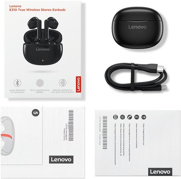 Lenovo E310 True Wireless Stereo Earbuds, čierne