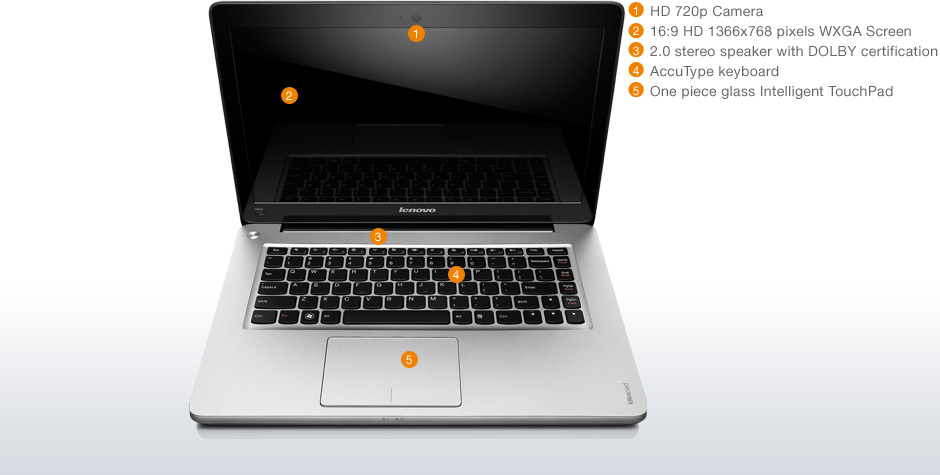 Štýlový výkonný ultrabook Lenovo U410, ktorý budete radi brať všade so sebou. Je dostatočne mobilný a dostatočne spoľahlivý pre akékoľvek využitie. Lenovo U410 je rýchly, tichý, tenký a ľahký. Štýlové hliníkové šasi dostupné v niekoľkých farebných prevedeniach - ružovej, modrej, striebornej. Disponuje pohodlnou klávesnicou AccuType, Dolby® Home Theater® v4 s 2.0 stereo reproduktormi, vstavanou 720p HD webkamerou s automatickým zaostrením tváre, inteligentným touch padom, technológiou Intel® Wireless Display (WiDi) technológiou Anti-theft, vysokorýchlostným portom USB 3.0 a OneKey® Rescue Systémom. Technológia InstantResume spustí počítač z režimu spánku za sekundu. Lenovo Smart Update aktualizuje vybrané programy, ako sú emailový klient alebo aplikácia sociálnych sietí, i keď je počítač v režime spánku. Technológia Lenovo BootShield zaisťuje stále rovnaký rychlý čas spustenia operačného systému a to i po inštalácií až 60 programov.Model LENOVO U410 šedý