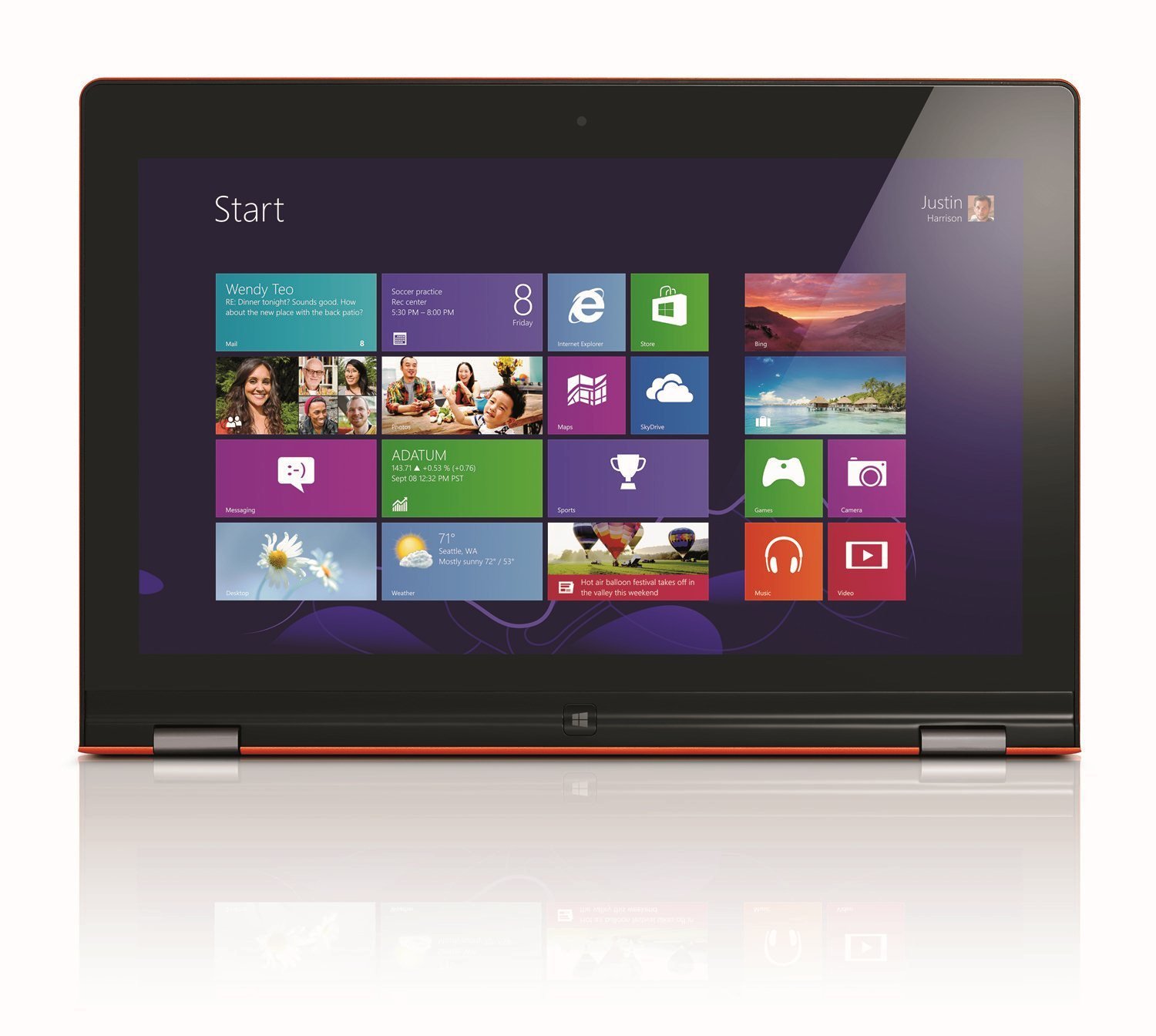 Úžasne tenké telo s 13,3" a dotykovou obrazovkou, ktorá sa navyše dokáže pretočiť o 360° by si prial nejeden nadšenej IT techniky. Použiteľnosť zariadenia navršuje Windows 8. Ten je výborne pripravený pre bežné ale aj dotykové rozhranie. Na prvý pohľad obyčajný notebook, ktorý pohodlne zvládne bežné pracovné úkony sa v zápätí môže premeniť na tablet. Hliníkové šasi chrániace rozmerný touchpad, štandardnú klávesnicou a dotykovú obrazovku vyzerajá výborne a elegantne. Lenovo Ideapad Yoga, ktorý vychádza z modelu IdeaPad U300s, disponuje patentovanou konštrukciou, ktorá dovolí otočiť obrazovku o 360°. Jej uhlopriečka dosahuje 13,3" a rozlíšenie 1 600 x 900 bodov. LCD displej dotyk rozoznáva na základe kapacitnej technológie. „Pod kapotou" sa skrýva procesor Intel Core i7. Hrúbka Yogy dosahuje len 16,9 mm a hmotnosť 1,47 kg. Po preklopení obrazovky sa automaticky deaktivuje klávesnica s touchpadom, aby sa zabránilo nechceným reakciám. Užívateľské prostredie Metro spolu s kombináciou štandardného rozhrania tvorí ideálny operačný systém pre Lenovo Yoga. Tomuto sa hovorí notebook (či ultrabook?) na prácu i zábavu!Lenovo Ideapad, YOGA13, Intel® Core™ i7-3537U Processor (4M Cache, 2.00 GHz), 512G SSD, 8G(1*8GBDDRIIIL1600), 13.3 HD+ (1600x900) LED IPS MULTI-TOUCH, Integrovana grafika, bez opt. mechaniky,,NON-INTEL 1X1 BGN+BT4.0 , bluetooth,WWAN 3G nie je možné,,2 in 1 card reader (SD, MMC), 1x USB 3.0, 1x USB 2.0, HDMI,4CELL 54WH,WIN8,1 rok carry in - vyzdvihnutie kurierom, CLEMENTINE ORANGE