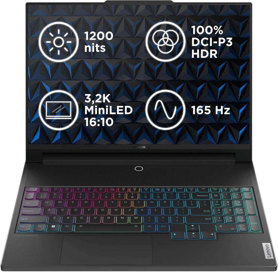 Lenovo Legion 9 16IRX8 je vybavený Mini-LED panelom s rozlíšením 3.2 K. Tento špičkový 16" displej prináša živé farby, hlbokú čiernu a rýchle prechody, vďaka ktorým vás každá hra uchváti. Herný displej Lenovo PureSight posúva hranice kreativity vďaka 94% pomeru obrazovky k telu a ae<2 X-Rite a certifikovaným farbám Pantone pre presné zobrazenie Vďaka 100% Adobe DCI-P3 a HDR 1000 uvidíte svoj obsah s úžasnými detailmi a farebným rozsahom.