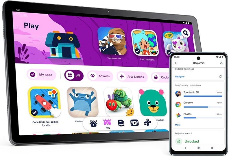 Do zariadenia s predinštalovaným operačným systémom Android 13 sa jednoducho prihlásite pomocou funkcie rozpoznávania tváre. Vaše deti môžu tablet bezpečne používať vďaka režimu Google Kids Space. Ten obsahuje množstvo obsahu vhodného pre deti a tiež disponuje sadou funkcii, s ktorými kontrolujete aktivitu aj čas strávený na zariadení.
