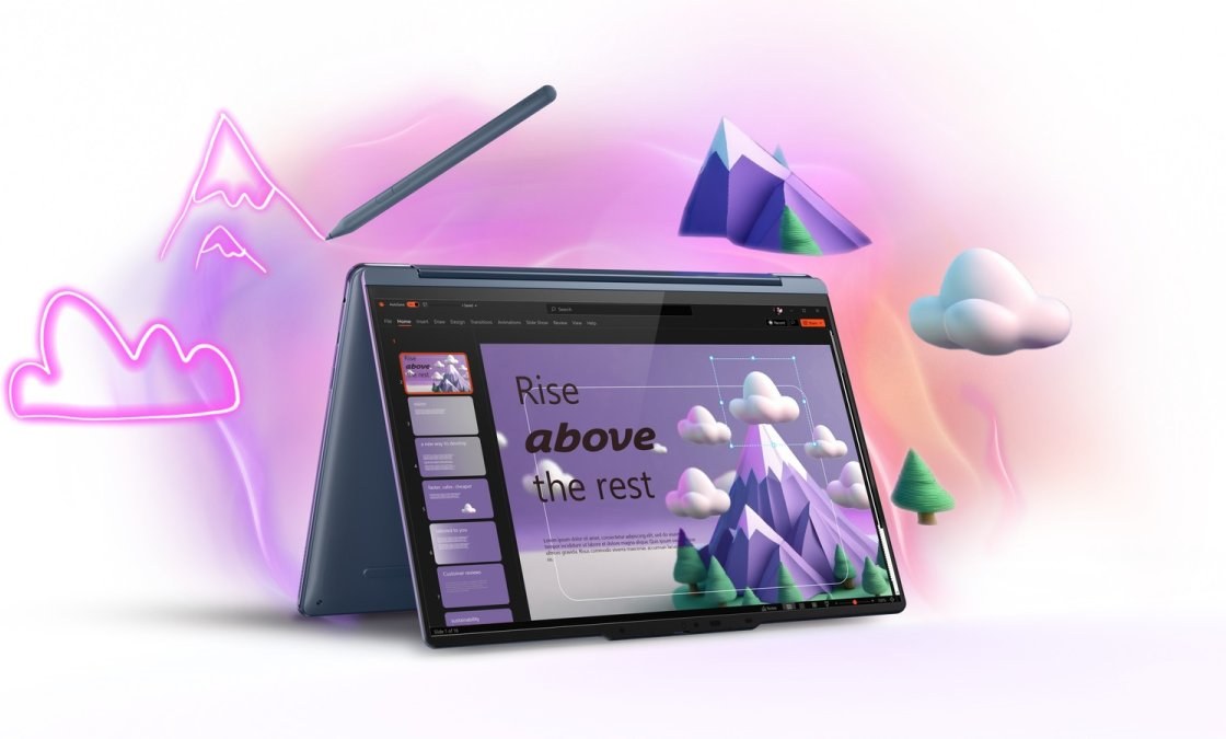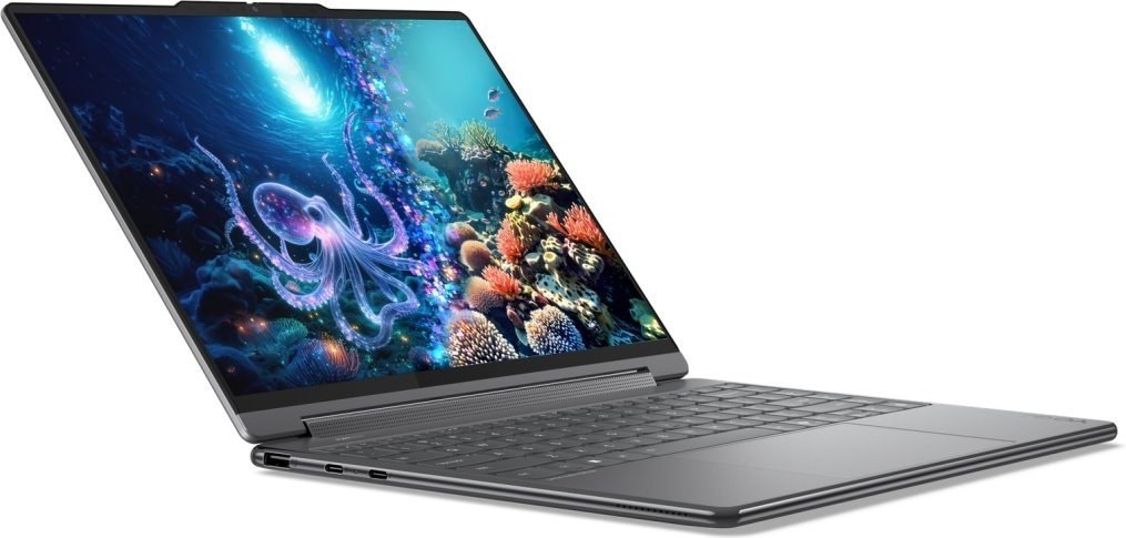 Srdcom zariadenia je moderný procesor Intel Core Ultra 7 258V, pozostávajúci zo 4 výkonných a 4 úsporných jadier s turbo taktom až 4,8 GHz a 12 MB AI cache. Navyše integrovaný Intel AI Boost NPU zabezpečuje až 47 TOPS v rámci Copilot+ PC, čo prináša vysoký výkon pre náročné aplikácie a multitasking. Grafiku obstaráva integrovaný Intel Arc Graphics 140V, vhodný aj na ľahšiu tvorbu či editáciu obrázkov. Yoga 9 disponuje rýchlou 32 GB LPDDR5x pamäťou RAM, ktorá je pevne spojená so základnou doskou a ponúka výkon bez kompromisov. Vnútorné úložisko tvorí 1 TB M.2 PCIe 4.0x4 NVMe SSD – dostatok priestoru pre aplikácie, dokumenty aj médiá.