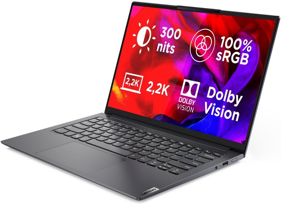 Ponorte sa do úžasného zvuku s reproduktormi Harman Kardon a technológiou Dolby Atmos. Umiestnenie reproduktorov navyše zaručí, že zvuk bude čistý a bez akéhokoľvek skreslenia. Yoga Slim 7 ponúka veľkú batériu s kapacitou 61 Wh. Odteraz sa môžete rozlúčiť s neustálym nabíjaním. Batéria notebooku vydrží až 18 hodín na jedno nabitie, navyše s funkciou rýchleho nabíjania získate za 15 minút nabíjania až 3 hodiny navyše.Vlastnosti