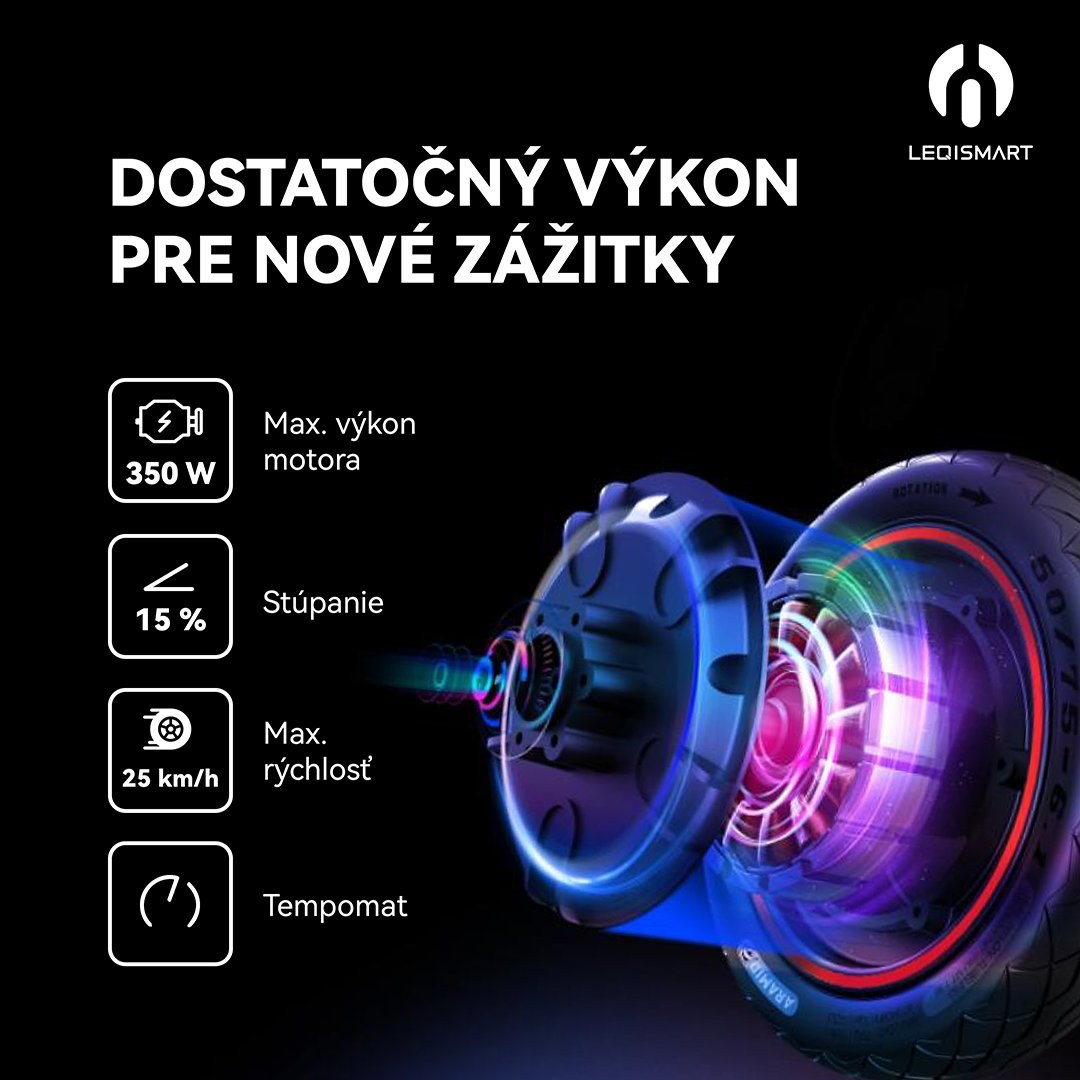 Elektrická kolobežka LEQI A6S Pro je vybavená výkonným 350 W motorom, ktorý bez problémov zvládne mestské presuny aj výlety mimo mesta. Vďaka maximálnemu dojazdu až 30 km sa stáva ideálnym spoločníkom na každodenné dochádzanie do práce, školy či na voľnočasové aktivity. Kolobežka si poradí aj s 15 % stúpaním, čo oceníte najmä v kopcovitom teréne. Navyše, vďaka rekuperácii energie pri brzdení alebo jazde z kopca sa dojazd môže ešte predĺžiť.