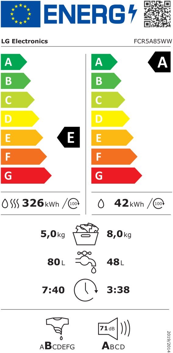 LG FCR5A85WW, práčka so sušičkou predom plnená, slim