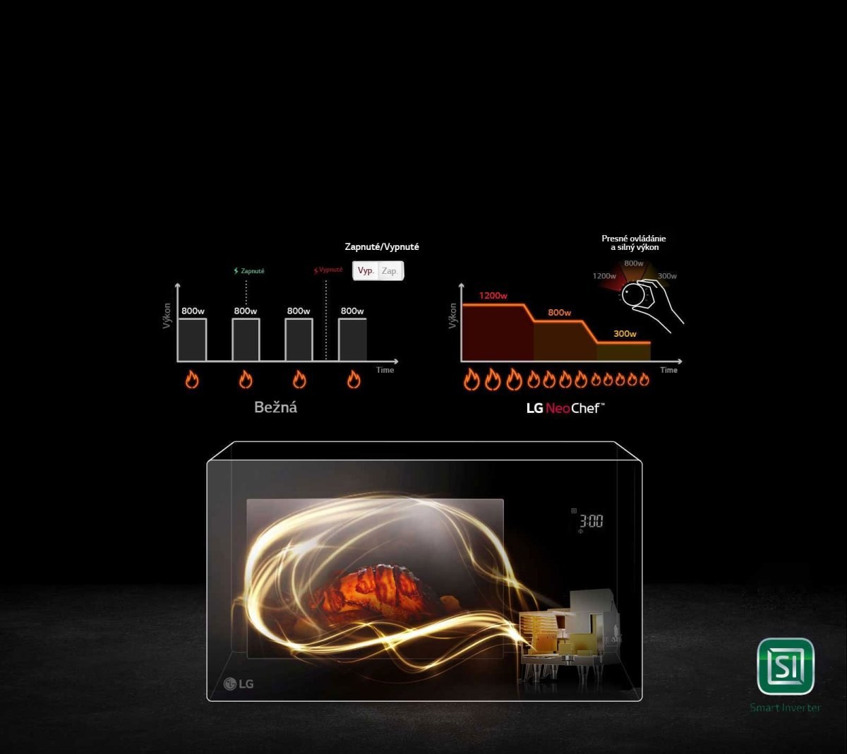Technológia Smart Inverter spoločnosti LG zaisťuje precízny výkon pre ohrev a rozmrazenie ešte širšej ponuky potravín. Vďaka presnej regulácii teploty je možné v mikrovlnnej rúre pripraviť viac pokrmov ako predtým.Rovnomerné ohrievanie