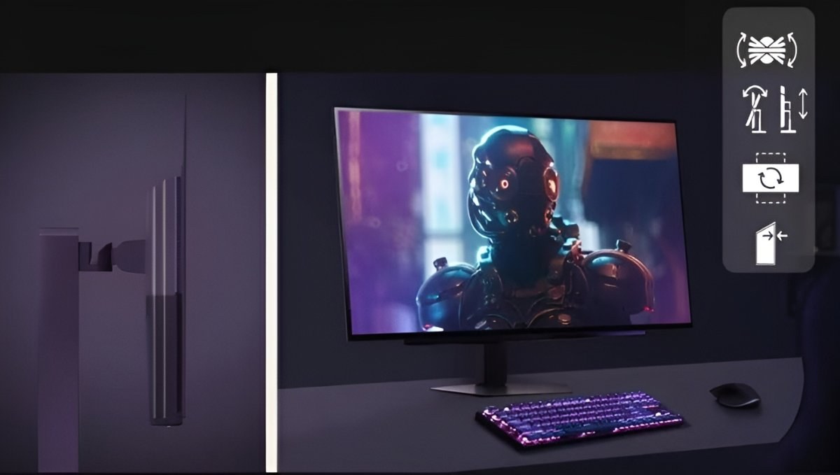 Monitor má moderný, takmer bezrámikový dizajn, ktorý pôsobí prémiovo a súčasne maximalizuje pracovnú plochu. Zadné RGB podsvietenie dodáva monitoru futuristický vzhľad a vylepšuje atmosféru herného setupu. Stojan umožňuje nastavenie výšky, náklonu, natočenia aj funkciu pivot, čo poskytuje vysoký komfort pri dlhom používaní. Nechýba ani kompatibilita s VESA 100 × 100 mm pre uchytenie na držiak či rameno.