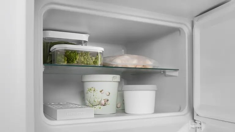 Dverový alarm Vašej chladničky Liebherr stráži, aby ste zbytočne neplytvali energiou a potravinami. Keď sú dvere chladničky otvorené príliš dlho, upozorní na to alarm – pulzujúce svetlo a výstražný tón.Polička vo dverách