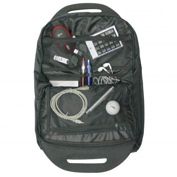 - 3 samostatné oddiely s veľkým množstvom vreciek pre komfortné užívanie - v prednej časti batohu menšie sieťové kapsičky na príslušenstvo a doplnky k notebooku, uprostred samostatná veľká kapsa na dokumenty, v zadnej časti batohu polstrovaná kapsa na notebook a menšie kapsička na zips