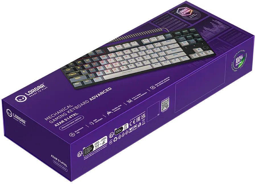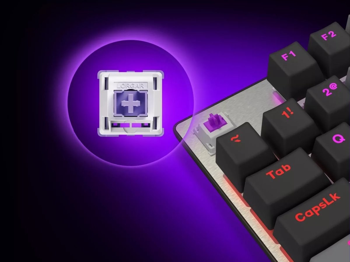 Srdcom klávesnice sú lineárne mechanické prepínače LORGAR™ Dream Switches, ktoré vydržia až 50 miliónov stlačení. Ich aktivačná sila je nastavená na 40 gramov, čo minimalizuje riziko nechcených vstupov. Aktivačný bod je umiestnený na 2 mm v rámci celkového pohybu 4 mm, čo zabezpečuje rýchlu odozvu a výhodu v dynamických herných situáciách.
