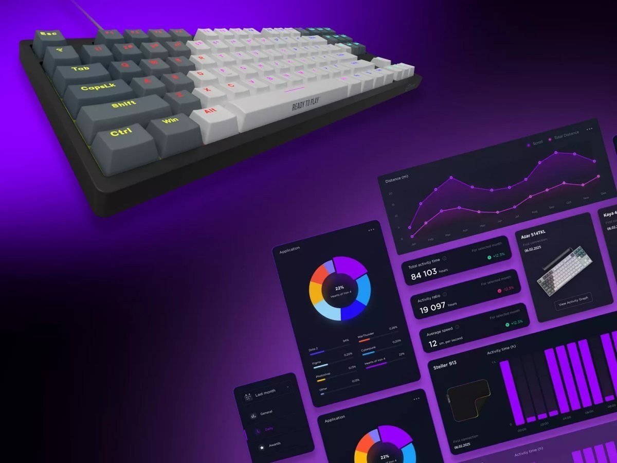 Azar 514 TKL má kompaktné rozloženie s 87 klávesmi, čo šetrí miesto na stole bez kompromisov vo funkčnosti. Tento formát umožňuje lepšie umiestnenie myši, čím sa znižuje pohyb ruky a zlepšuje celková ergonómia. Pogumované trojpolohové nožičky umožňujú nastaviť ideálny uhol pre pohodlné písanie či hranie.