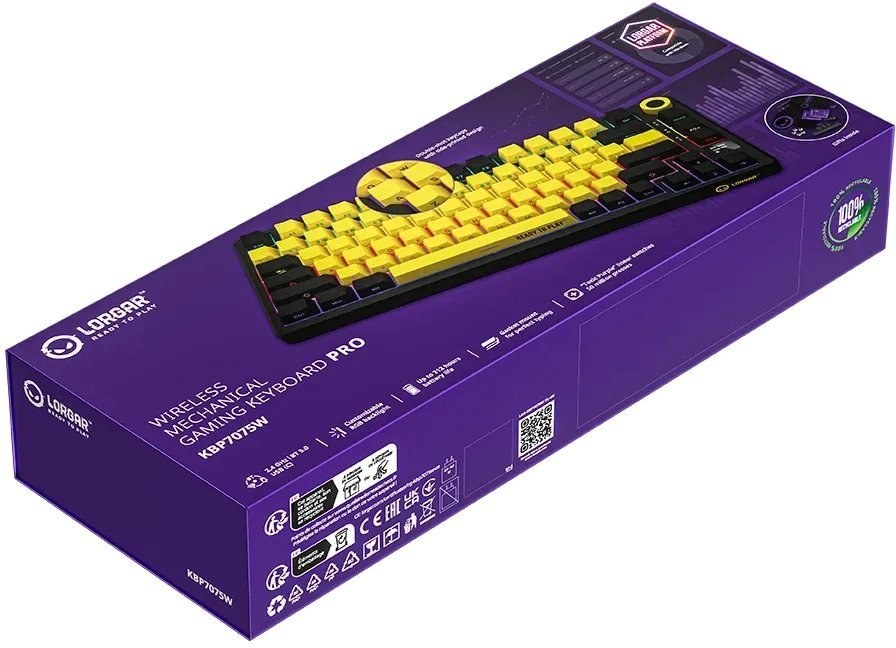 Lorgar KBP7075 Pro, bezdrôtová mechanická herná klávesnica, SK/CZ, žltá