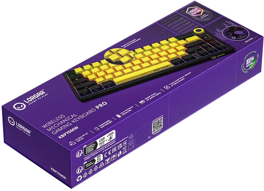 Lorgar KBP70MW, bezdrôtová mechanická herná klávesnica, SK/CZ, žltá