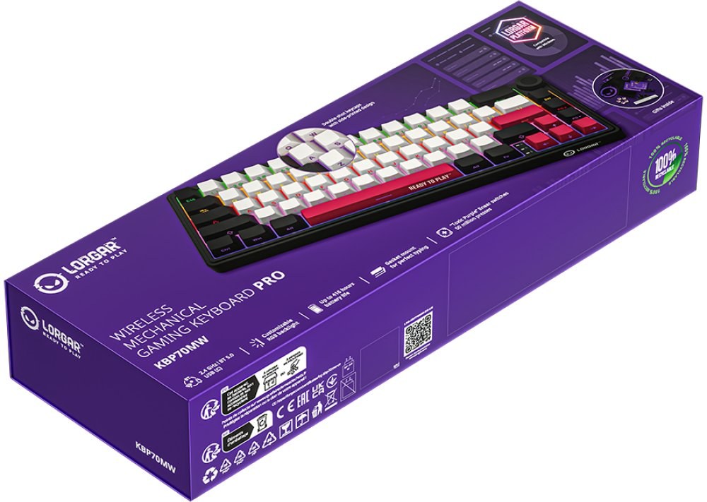 Lorgar KBP70MW, bezdrôtová mechanická herná klávesnica, US layout, čierna