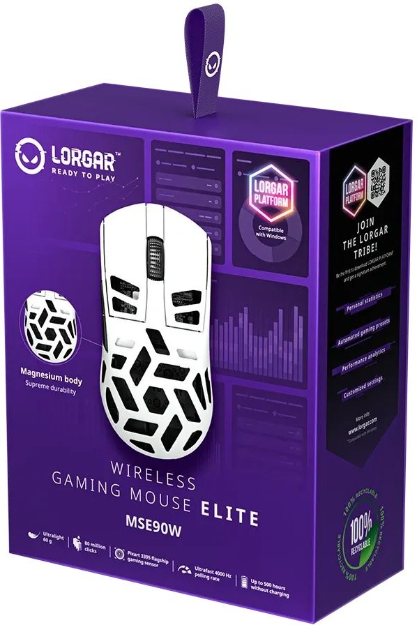 Lorgar MSE90W, elitná bezdrôtová herná myš, biela